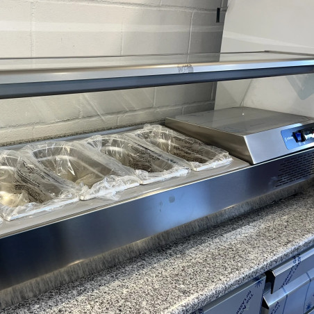 L’expositeur réfrigéré professionnel 5 bacs est conçu pour la conservation et la présentation des ingrédients pour salades et pizzas. Fabriqué en acier inoxydable à l’intérieur comme à l’extérieur, il garantit durabilité, hygiène et facilité de nettoyage. Son couvercle transparent offre une parfaite visibilité du produit, idéal pour les établissements de restauration souhaitant maintenir leurs ingrédients toujours frais et prêts à servir.