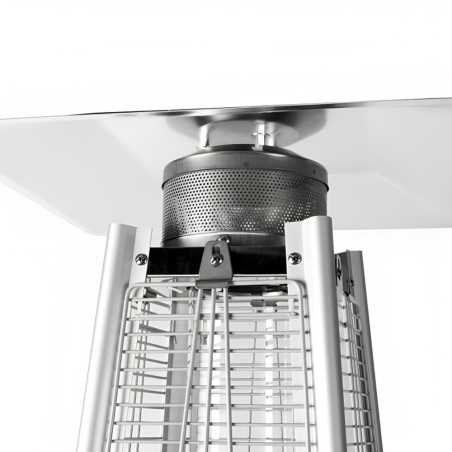 Poêle à gaz noir et argent, idéal pour l'extérieur et la terrasse.