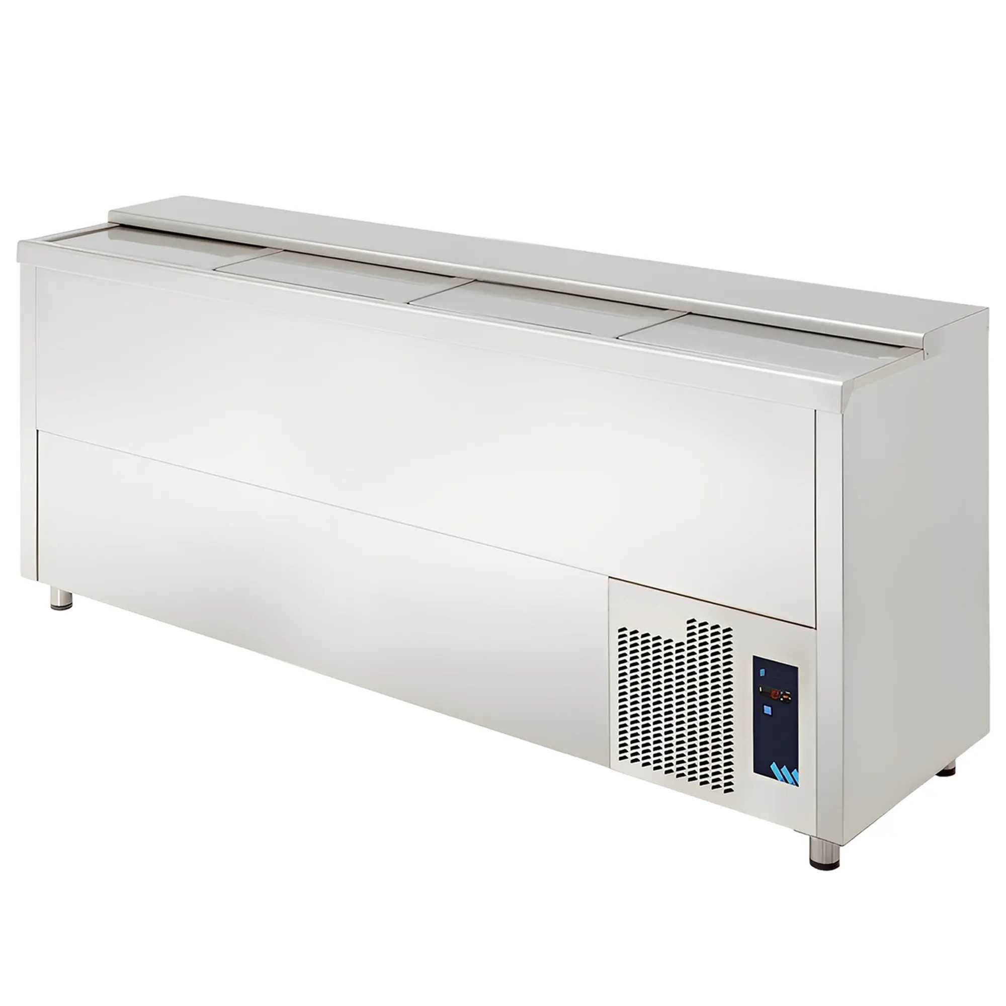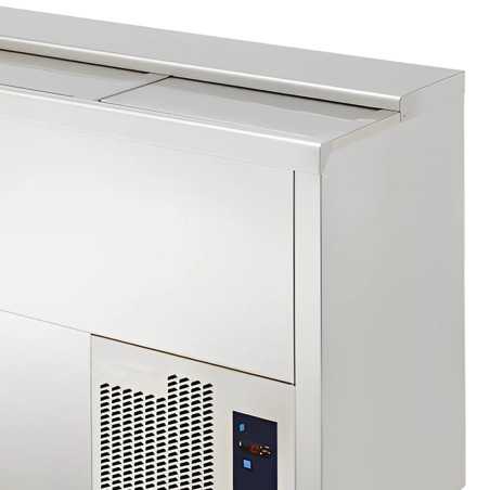 Ce refroidisseur de bouteilles professionnel 580 L pour bar avec portes coulissantes et froid +2/+8°C est la solution idéale pour conserver et exposer les boissons en restauration et en commerce. Sa structure compacte avec isolation injectée intègre un intérieur en inox avec jonctions arrondies, pour un nettoyage rapide et une hygiène maximale. Son système de ventilation spécifique permet d’installer l’arrière-bar réfrigéré contre un mur ou encastré entre meubles sans perte de performance, en maintenant une température stable de +2 à +8°C même avec 32°C ambiant. Les portes coulissantes avec poignée intégrée facilitent l’accès en espaces réduits, et le groupe condenseur extractible simplifie la maintenance en usage intensif au bar.