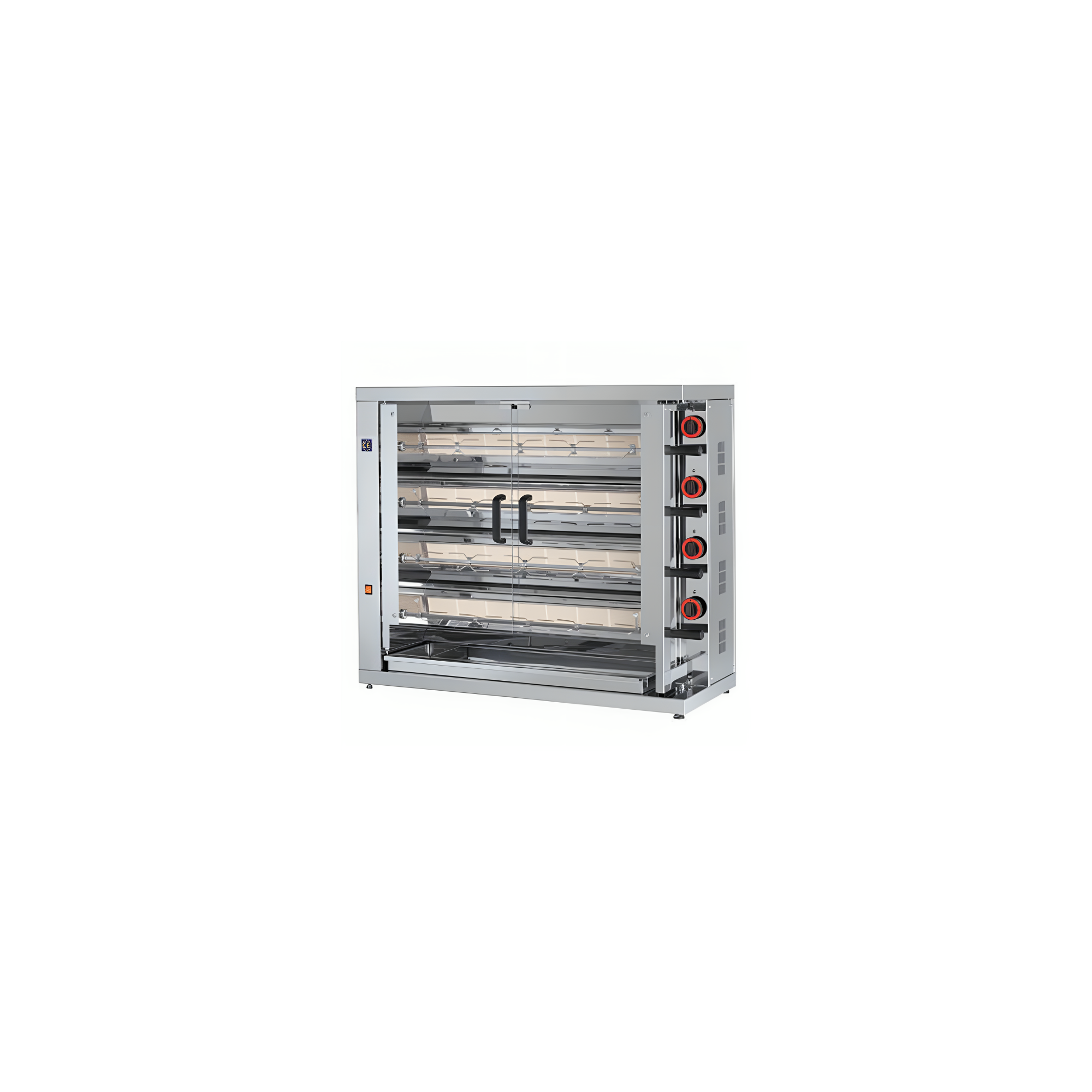 Rôtissoire industrielle de poulet à quatre lames pour 20 ou 24 poulets.
