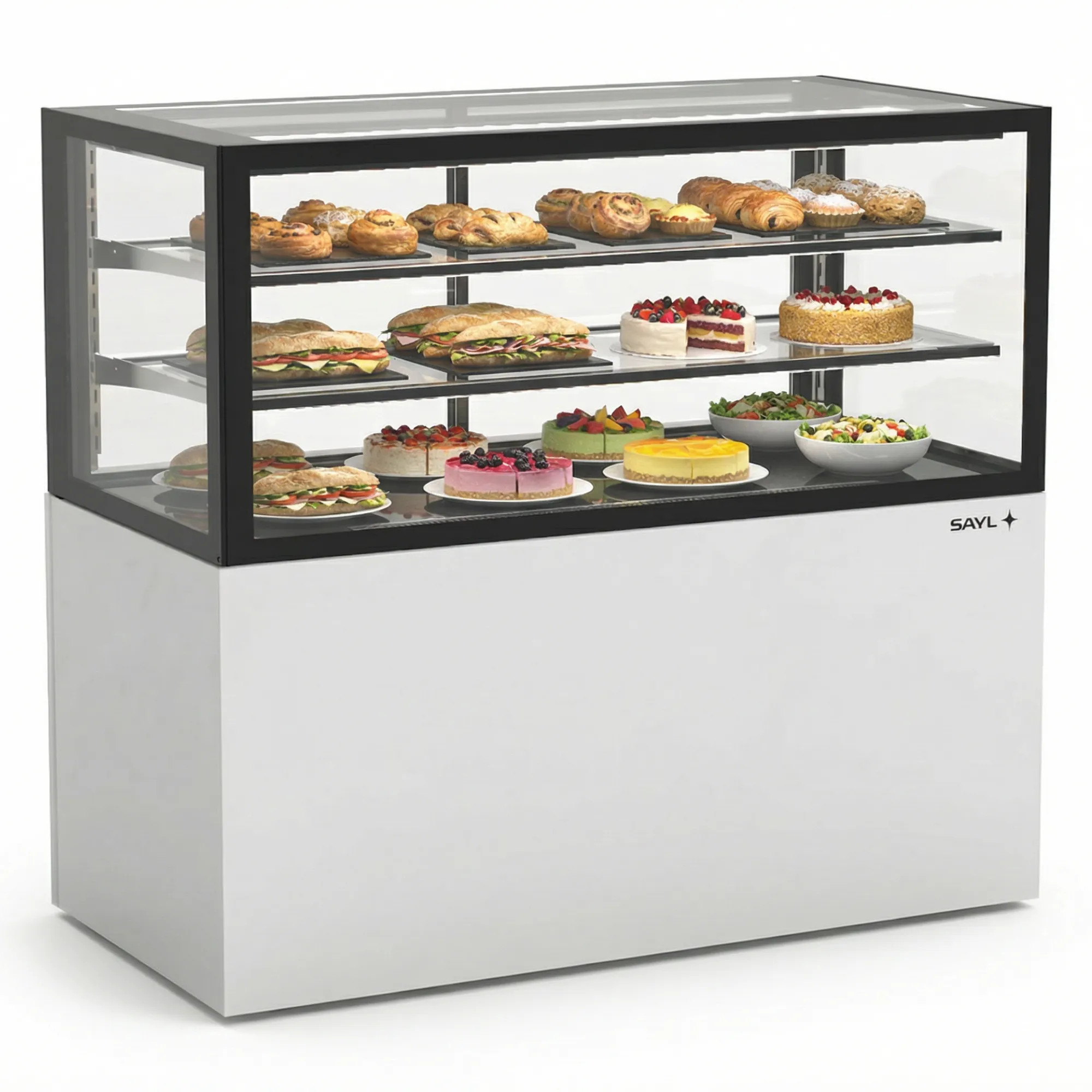 Vitrine neutre conçue pour s'intégrer dans n'importe quel espace pour n'importe quel produit. Vitrine pour bar, restaurant, cafétéria, boulangerie et pâtisserie.